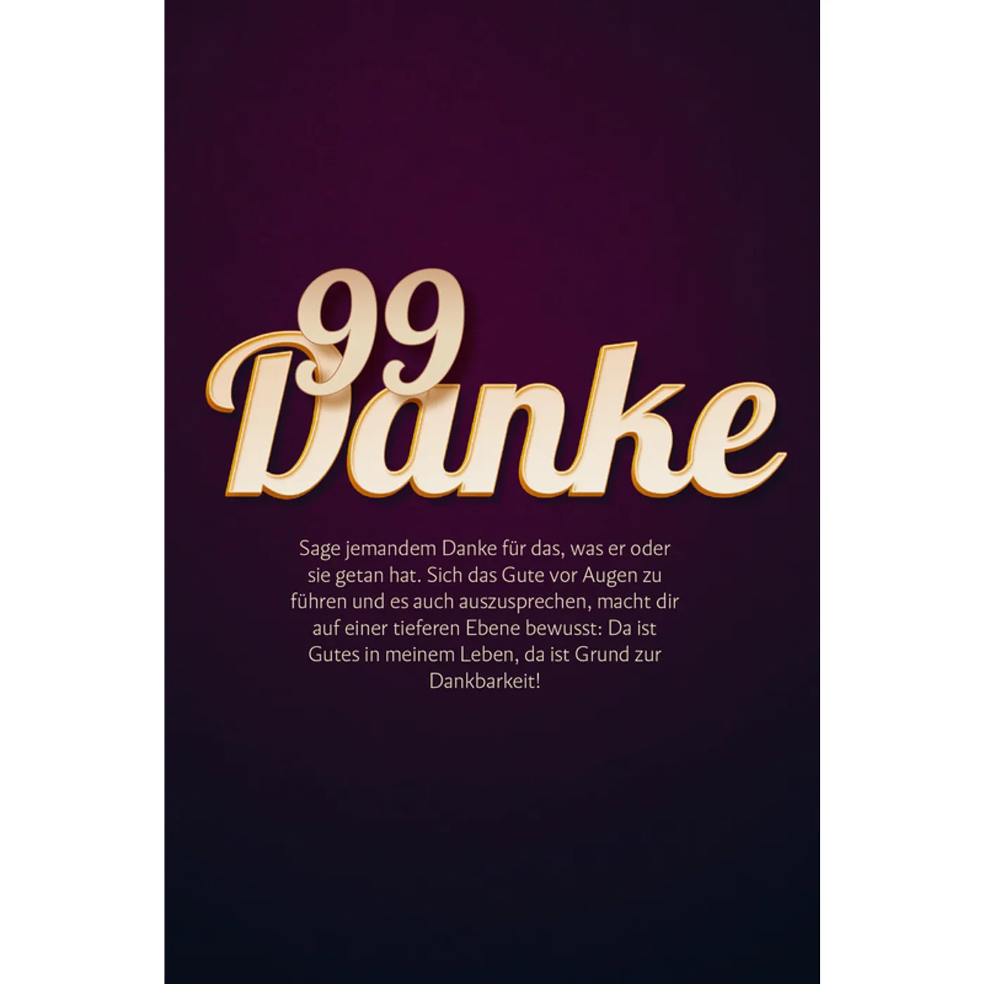 Dieses sehr ansprechend gestaltete Büchlein veranschaulicht auf 99 Seiten 99 Ideen mit denen man ohne großen Aufwand etwas für sich selber tun kann. Die meisten Anregungen kennt man eigentlich. Man setzt sie nur leider im hektischen Alltag viel zu selten um. Hier werden gezielt leicht umzusetzende Gedankenanstöße gesammelt und optisch sehr gekonnt in Szene gesetzt. Tolle Fotos und graphisch gestaltete Seiten vertiefen den ruhigen Charakter der kurzen Texte. Ein schönes Kleinode, das man auch gut als kleines Mitbringsel für gute Freunde verschenken kann.