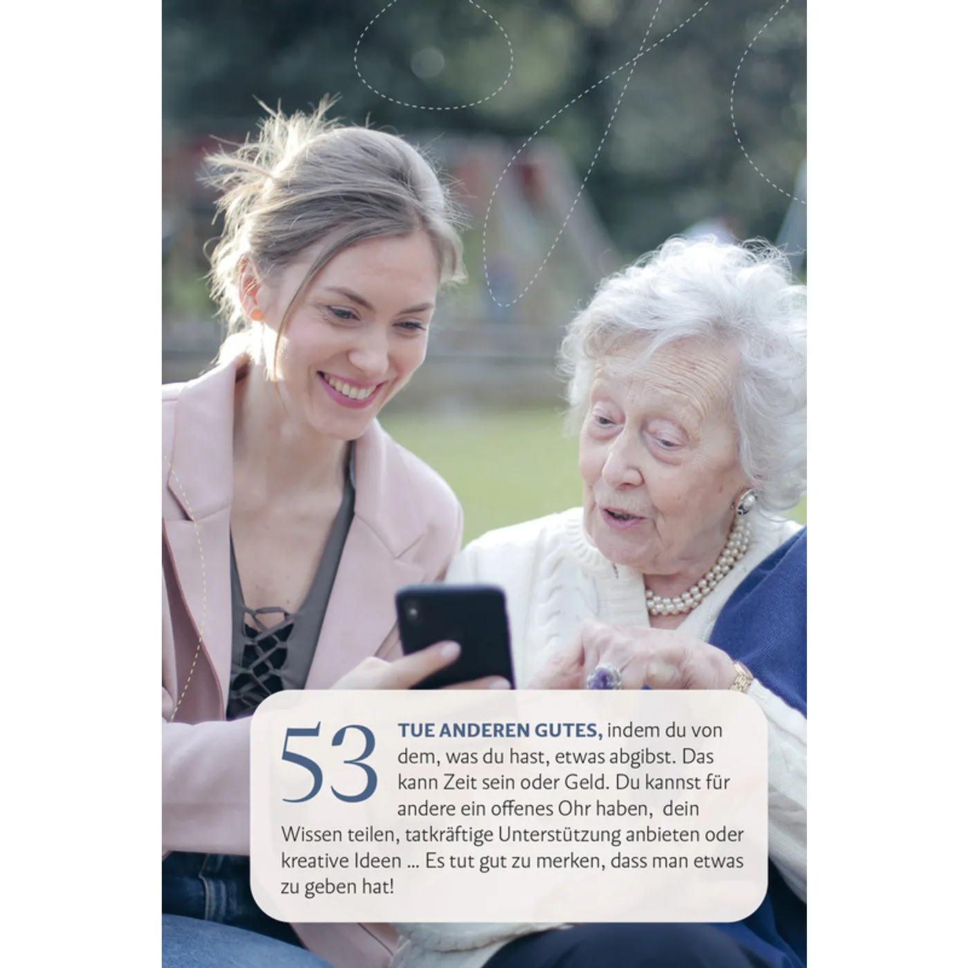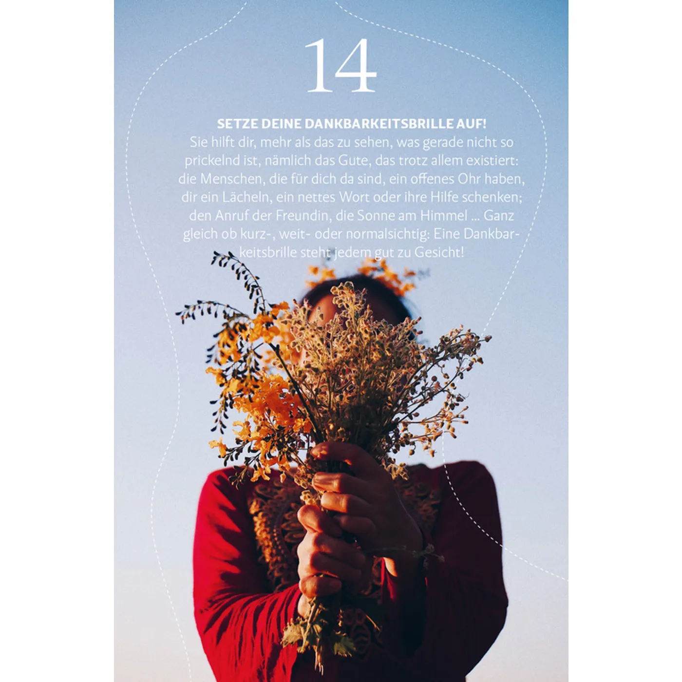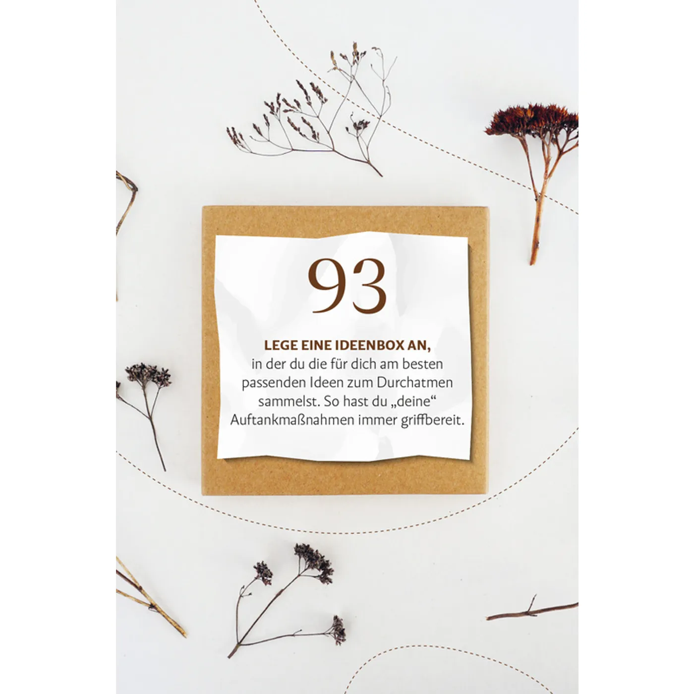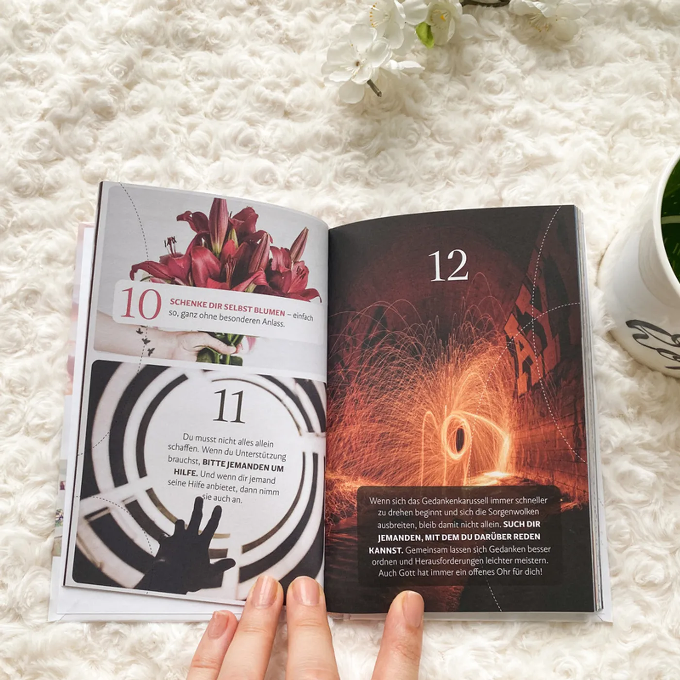 Umso wichtiger finde ich es, die individuell zum eigenen Leben passenden Atempausen zu finden und in den Alltag zu integrieren. Dafür gibt es im Buch jede Menge Inspiration. Im handlichen Format werden im Buch 99 Möglichkeiten des Kraftschöpfens für Leib, Seele und Geist vorgestellt. Die Tipps sind zumeist leicht und ohne großen Aufwand umzusetzen. Dazu gibt es ansprechende Bilder, die das Blättern im Büchlein zu einem optischen Vergnügen machen.