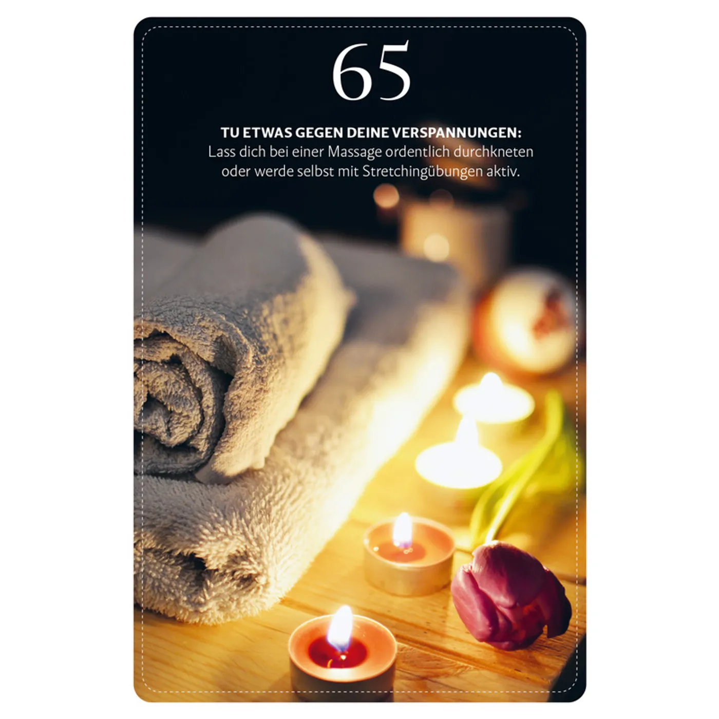Aus eigener Erfahrung weiß ich, dass es unterschiedliche Lebenssituationen gibt und nicht jeder Ratschlag zu jeder Zeit umsetzbar ist. So kann beispielsweise Tipp 38 (Sorge für genug erholsamen nächtlichen Schlaf) sowohl für Beschäftigte im Schichtsystem als auch für Eltern kleiner Kinder unerreichbar sein.