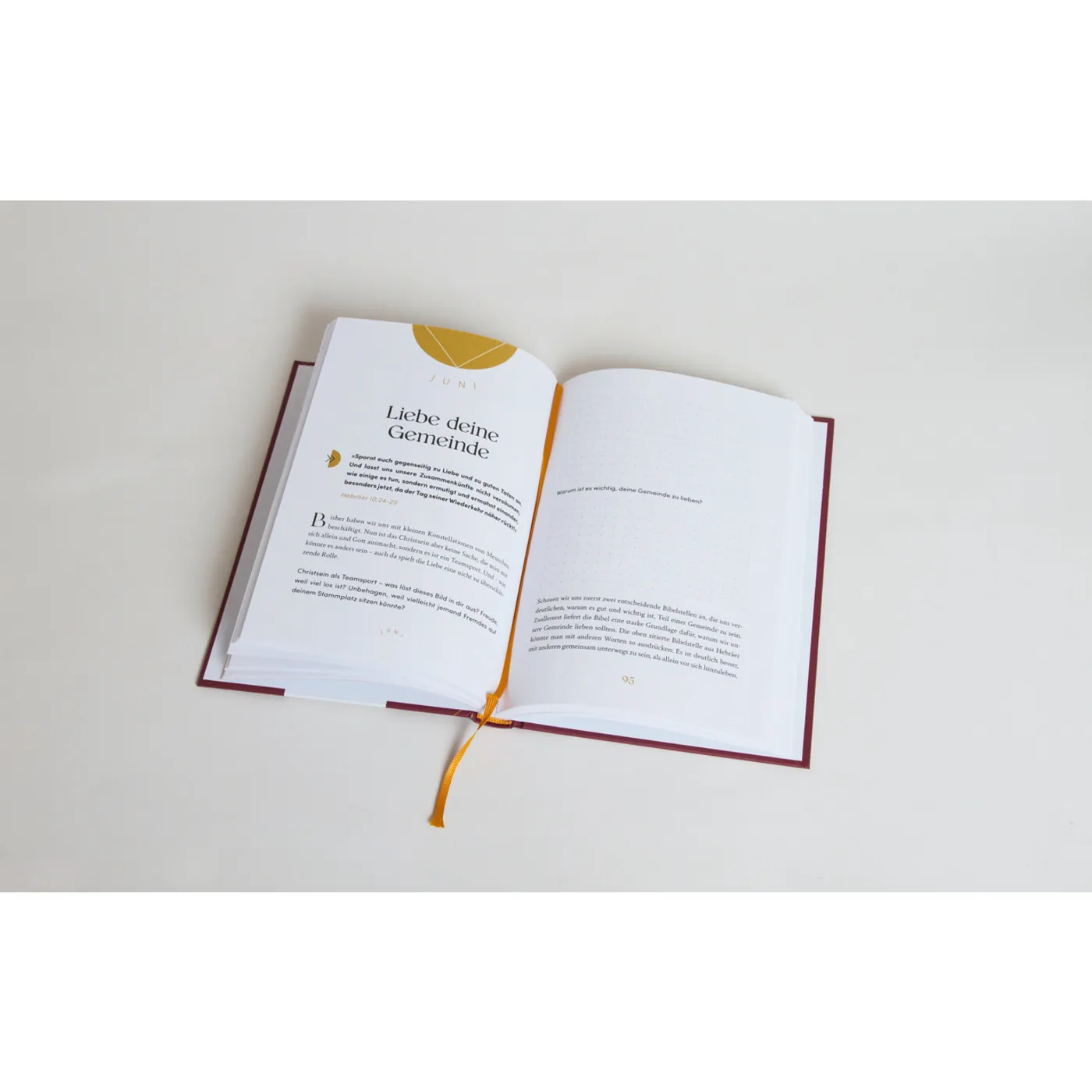 Zum Ende jeden Monats gibt es die "Challenge des Monats", die wiederuum Fragen aufwirft, die jeder für sich beantworten darf. Darauf folgt "Tiefer tauchen" mit Ereignissen der Bibel und was wir daraus lernen können. Abschließend der Rückblick mit der Frage: Was hat sich in die verändert? Was nimmst du aus diesem Monat mit in den nächsten?