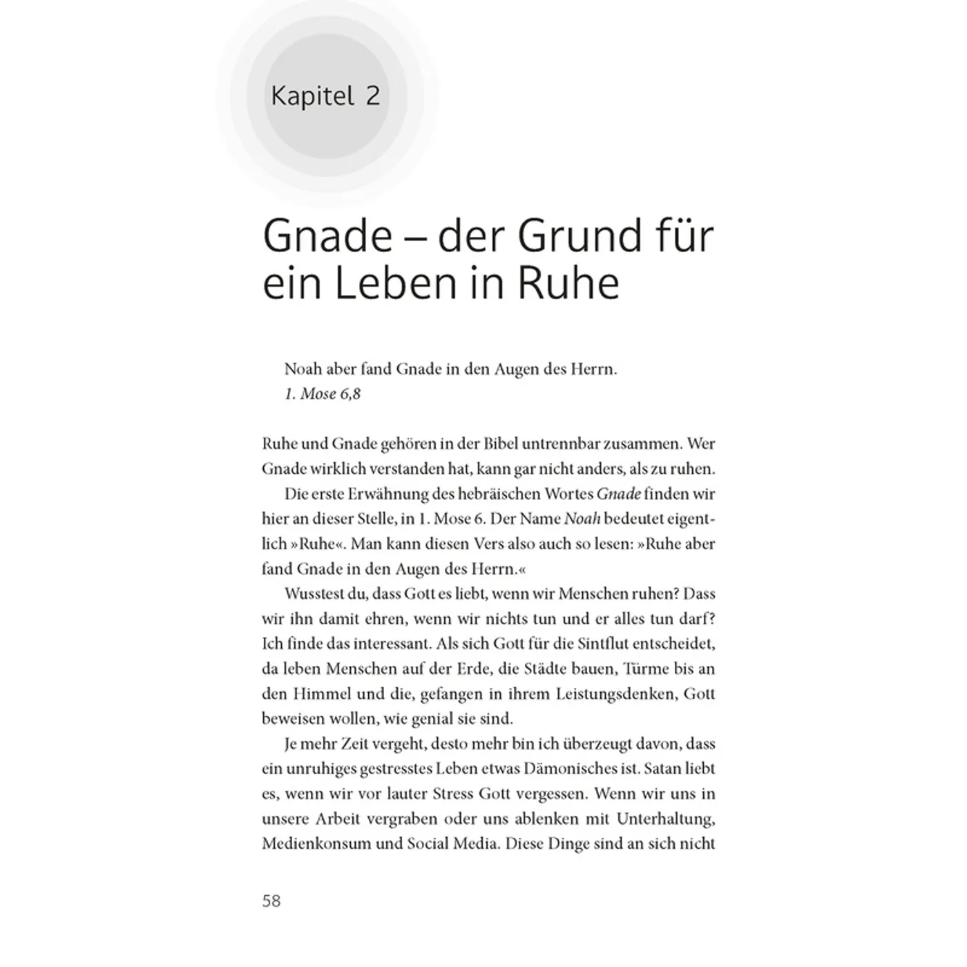 Auf ansprechende Art und Weise hat die Autorin das Thema Ruhe und Gnade Gottes aufgegriffen und mit praktischen Tipps versehen, die uns helfen, die Dinge, die wir gelesen haben, auch im Alltag umzusetzen.