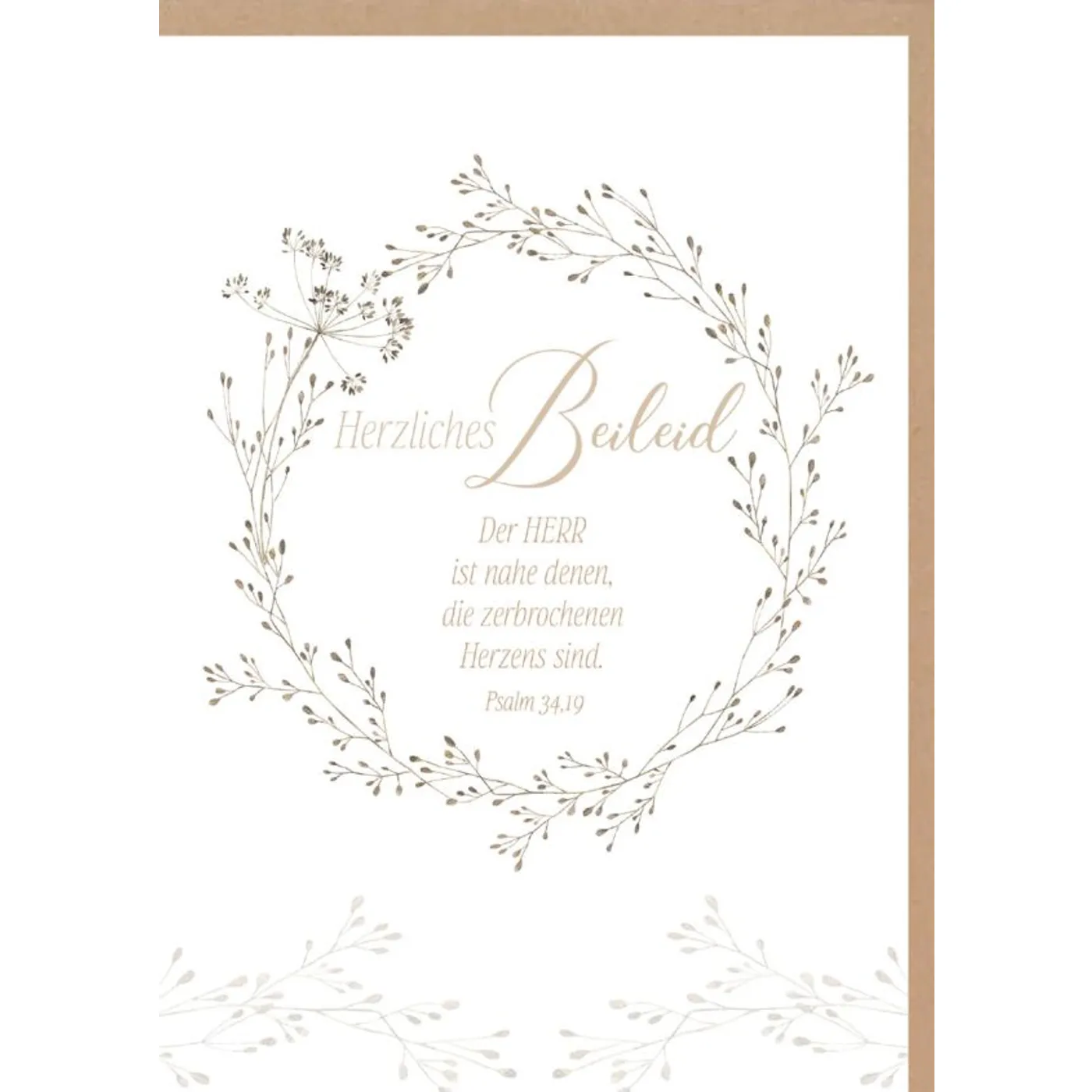 Elegante Faltkarte zur stillen Anteilnahme und Beileidsbekundung. Mit einem trostspendenden Bibelvers aus Psalm 34:19 sind die richtigen Worte schon gefunden.
