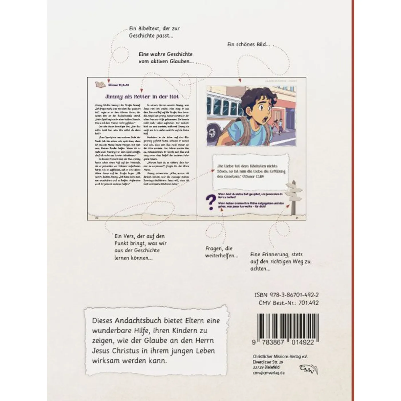 Die Geschichten erzählen Erlebnisse von Kindern. Gesammelt und aufgeschrieben wurden sie von Helen Haidle, Jeannie Taylor und Barbara Martin. Zu jeder Geschichte wird ein passender Bibelabschnitt vorgeschlagen, der im Rahmen einer Familienandacht mitgelesen werden kann. Ein Bibelzitat am Ende fasst die Botschaft der Geschichte zusammen. Abschließende Anwendungsfragen helfen, das Gelernte zu vertiefen.