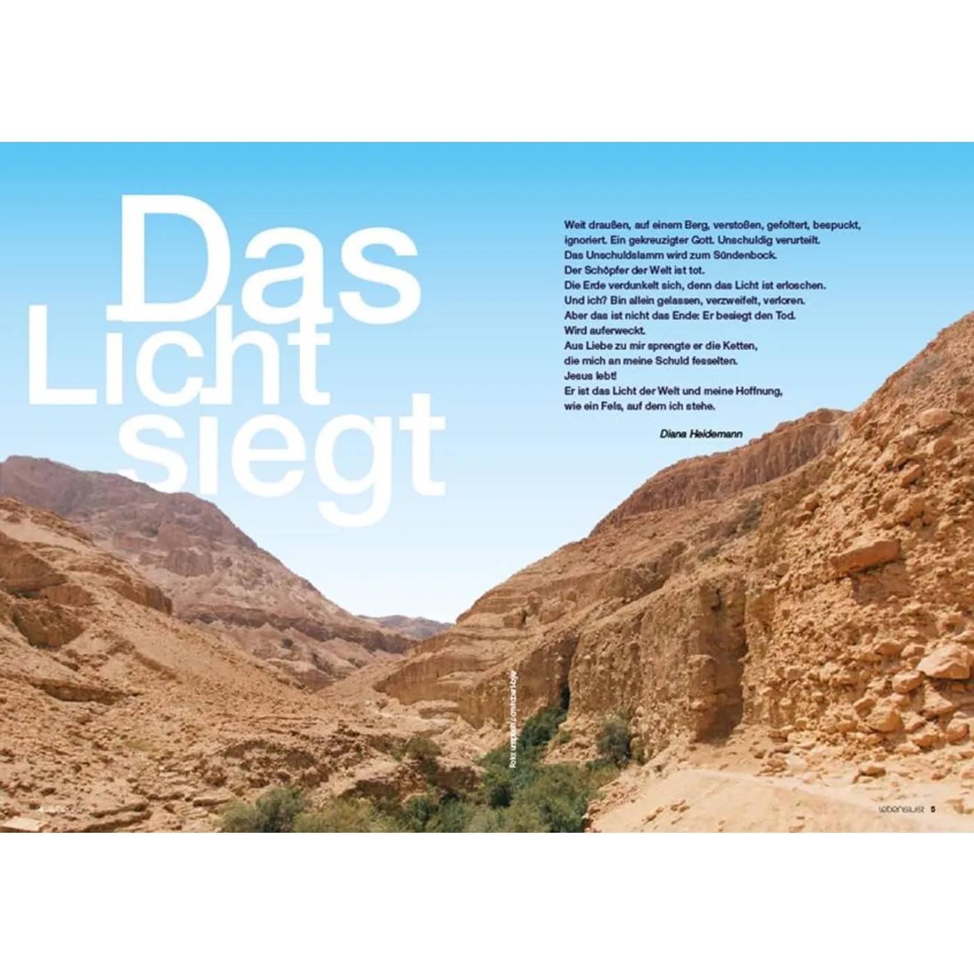 Täglich platzen Träume, Menschen müssen ihre Lebenspläne begraben. „Das ist das Ende!“, dachten auch die Männer und Frauen, die mit Jesus von Nazareth unterwegs gewesen waren. Sie hatten bewegende Worte gehört und beeindruckende Wunder gesehen. Doch dann war Jesus tot – und alles aus? Nein, Jesus überwindet den Tod! Das feiern wir an Ostern. Unsere Verwundungen sind nicht das Ende. Neues Leben wartet auf uns. Das lebenslust Special Ostern 2025 lädt zum Neu- und Umdenken ein: Menschen schildern, wie in scheinbar ausweglosen Leidsituationen neue Hoffnung entstand und was dies mit dem Osterwunder zu tun hat. Die tiefgehenden Wunden- und Wundergeschichten lenken den Blick der Leserinnen und Leser auf die Möglichkeit eines Neuanfangs. Das Special erzählt die Ostergeschichte und lädt dazu ein, erste Schritte zu einem persönlichen Glauben zu wagen. Ein Einblick in bekannte Ostertraditionen, Deko- und Rezept-Tipps runden diese Ausgabe ab. Mit dem 44-seitigen Heft im A5-Format lassen sich Freunde, Nachbarinnen oder Bekannte unaufdringlich auf den Inhalt des Osterfests ansprechen. Gemeinden können das Special für Verteilaktionen nutzen oder in Karfreitags- und Ostergottesdiensten auslegen. Inhalt: • Die Ostergeschichte nach der Bibel • Der verwundete Heiler • Eine Woche mit dem Zweifler Thomas • Wunden- und Wundergeschichten aus dem Ahrtal • Osterbräuche und ihre Herkunft • Erste Schritte zum Glauben • DIY: Hot Cross Buns