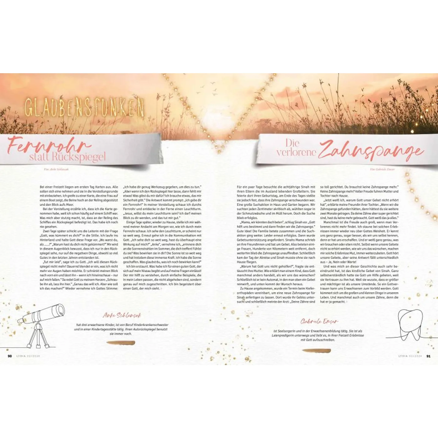 Die Lydia ist eine tolle Zeitschrift, in jeder Ausgabe gibt es ermutigende, spannende und hilfreiche Artikel, die mich persönlich weiterbringen.