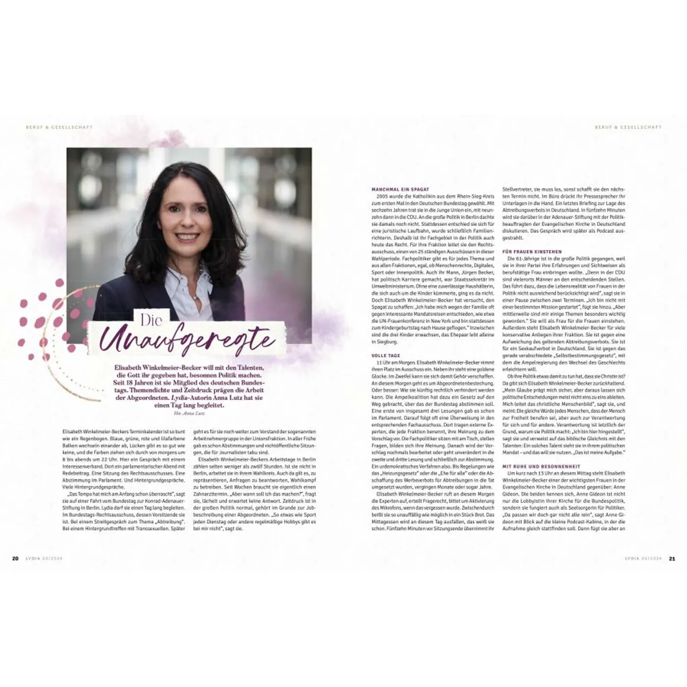 In der letzten Zeit wurde auch das Layout verjüngt und mehr Themen an junge Frauen gerichtet, so dass die Lydia insgesamt sehr ansprechend ist.