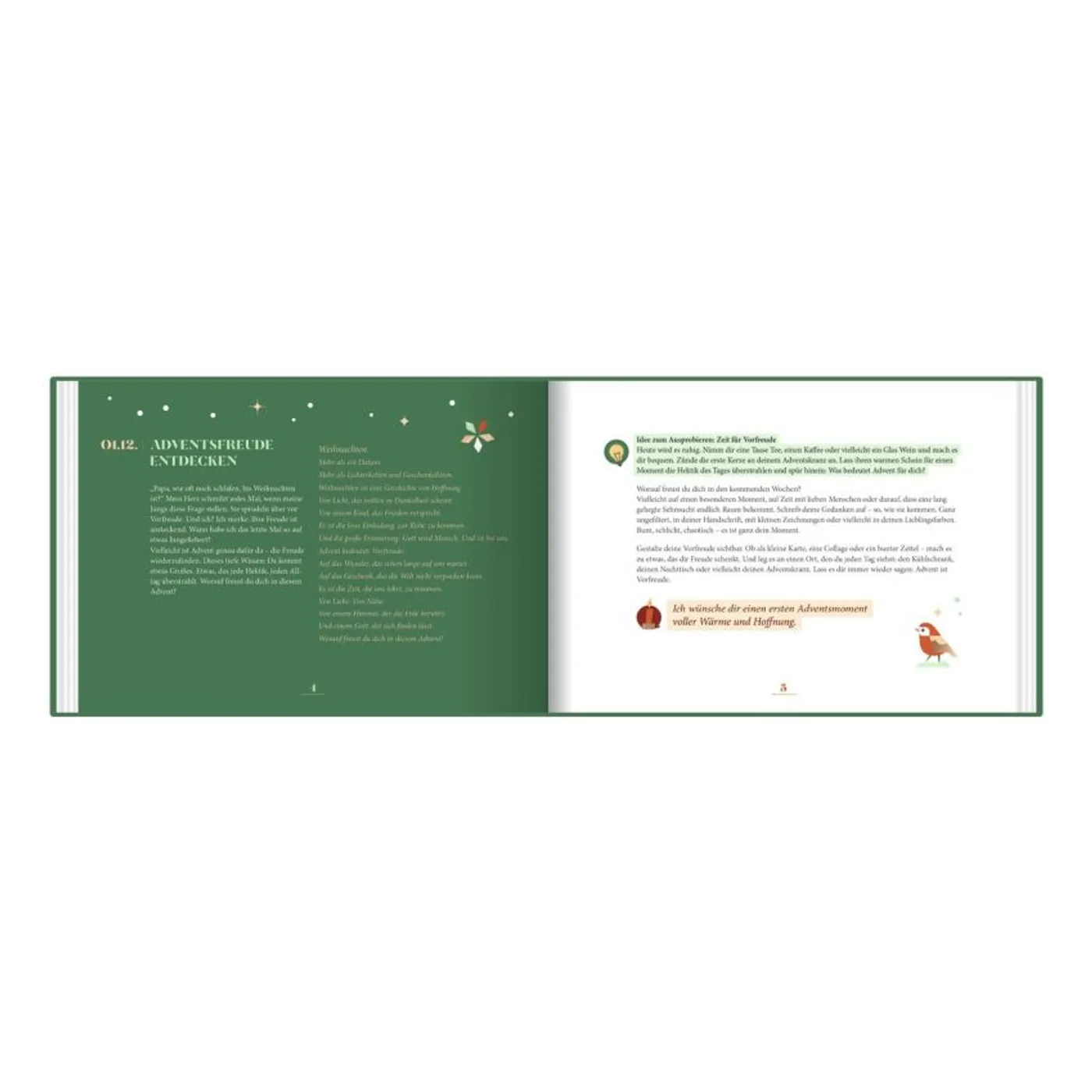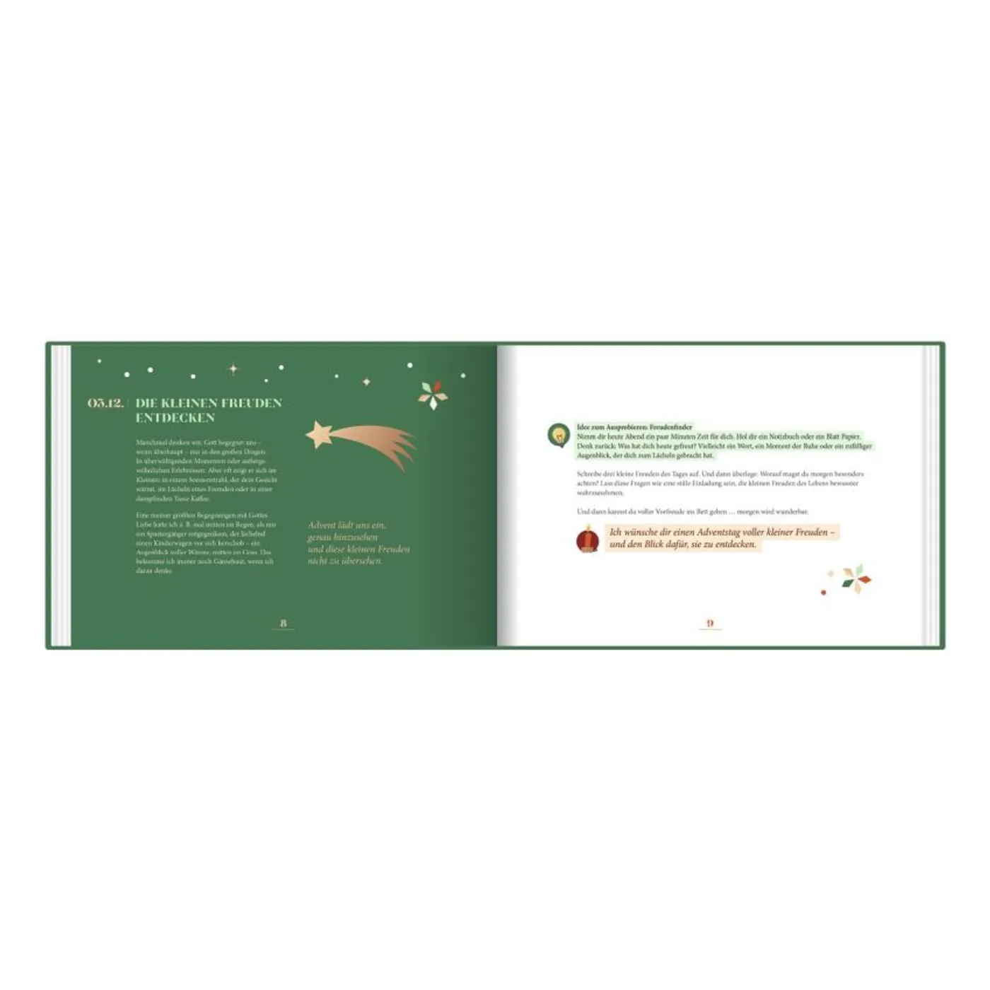 Auch auf die Inhalte freue ich mich. Für jeden Tag gibt es gute und inspirierende Gedanken, Fragen zum Nachdenken und schöne Anregungen zum Ausprobieren.