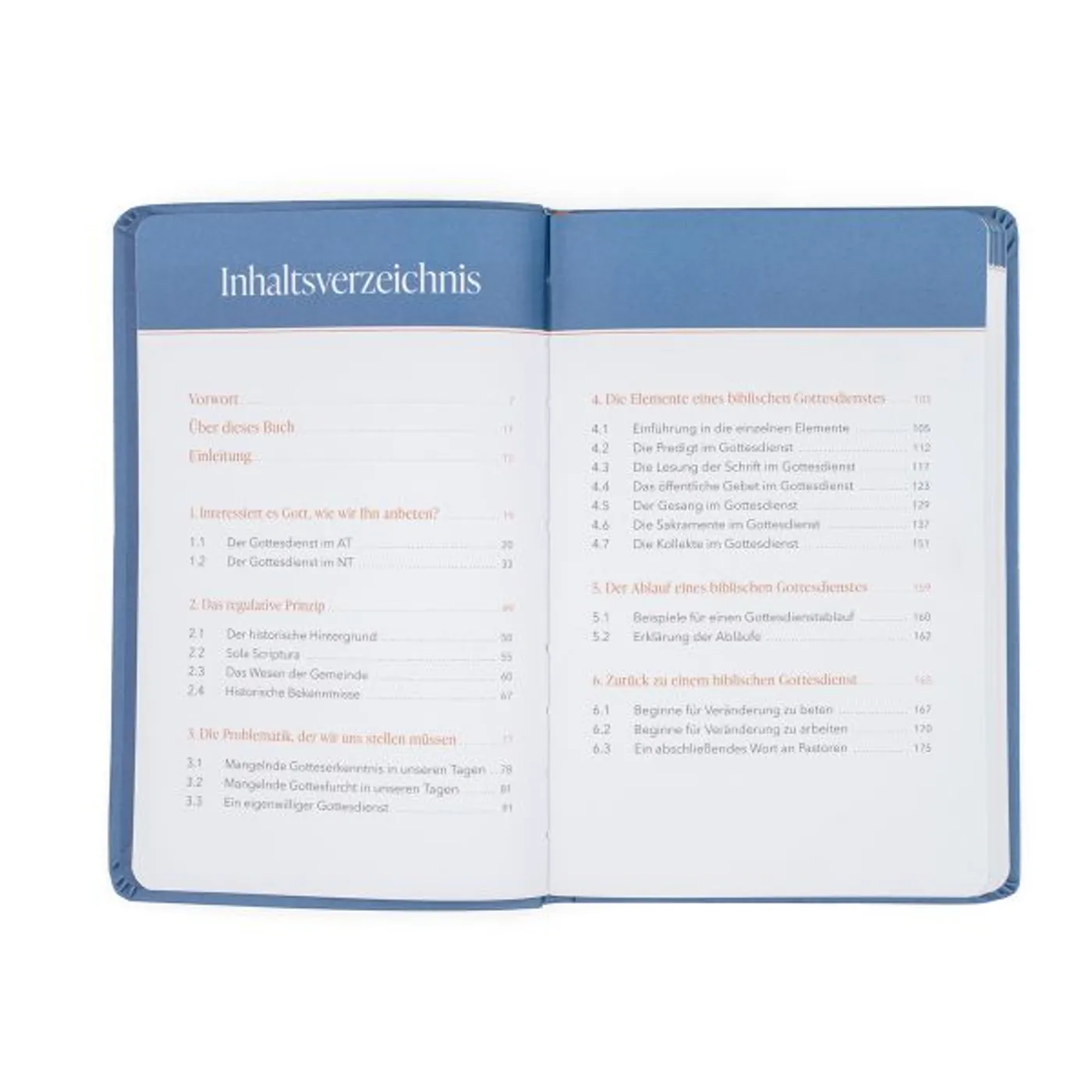 Das Buch ist klar strukturiert. Nach einer Einführung (Vorwort, Einleitung, persönliche Motivation) folgt die biblische Grundlegung: Gottesdienst im Alten und Neuen Testament, das regulative Prinzip und die Rolle von „sola scriptura“. Anschließend wird die Problematik unserer Zeit benannt: Unkenntnis über Gottesdienst, falsche Schwerpunkte und mangelnde Ehrfurcht vor Gott.